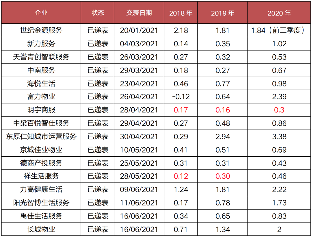 按照新規(guī),正在排隊(duì)的16家物企中將直接影響2家,分別是明宇商服和祥生活服務(wù),如果年底前不能通過聆訊,在2022年1月1日后重新遞表,就要受到新規(guī)的制約。在距離年底還有半年多的時間內(nèi),預(yù)計(jì)下半年會有更多中小物管集中闖關(guān),趕在年底前遞表。