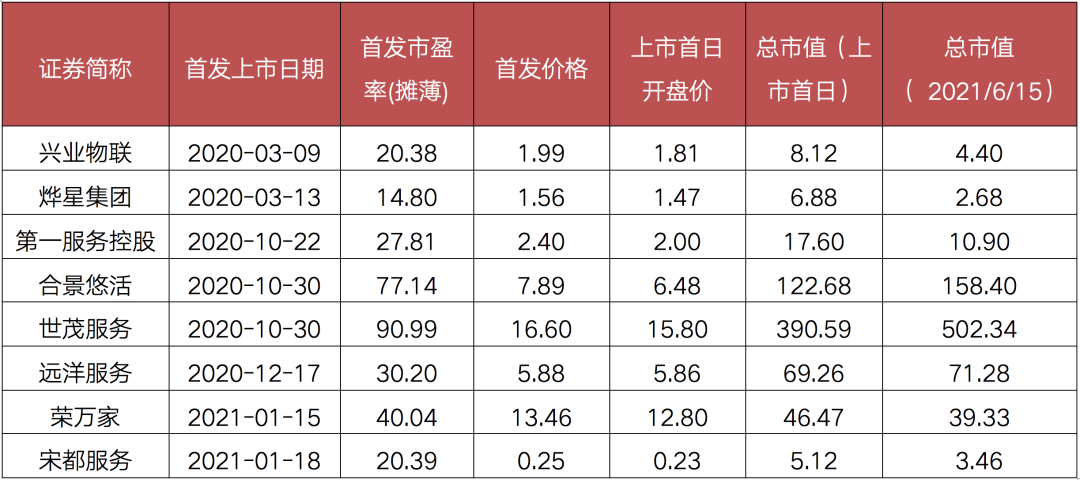 表:近期物管股開盤破發(fā)情況(億港元、港元/股)