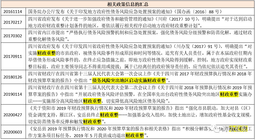 二、四川資陽市的雁江區(qū)和安岳縣已于2018年率先實(shí)施了財(cái)政重整計(jì)劃