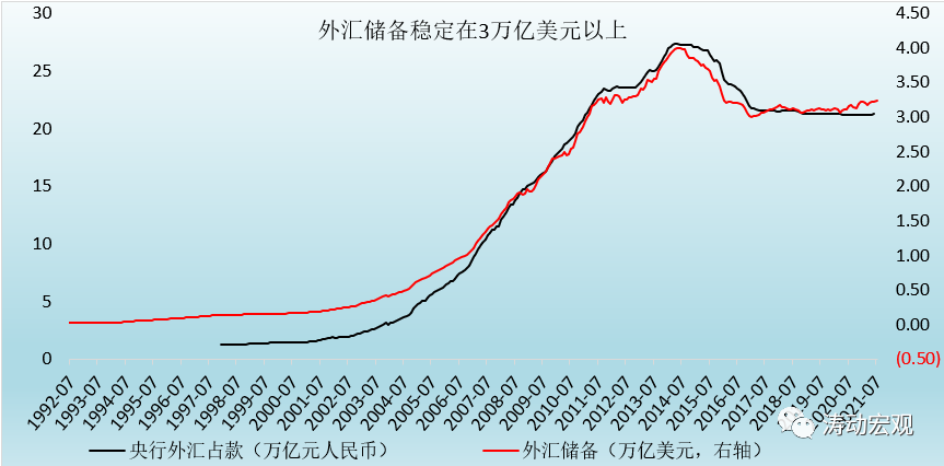 2、2014下半年以來,由于對外匯市場的干預以及外貿形勢惡化等因素,外匯儲備規模一路下降至2017年1月的29982.04億美元,并在之后的較長時期內穩定在3萬億美元以上。截至2021年7月,外匯儲備規模已達到3.24萬億美元,2020年以來凈增0.13萬億美元。