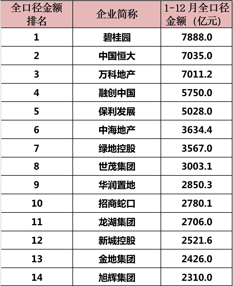 2020年度中國房地產(chǎn)企業(yè)銷售全口徑榜