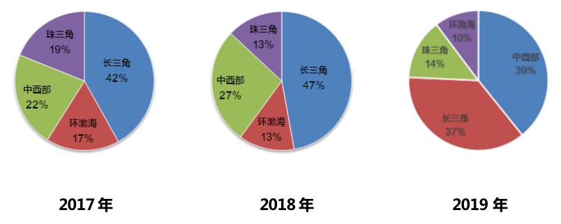 圖:2017-2019年招商蛇口各區(qū)域新增土儲占比