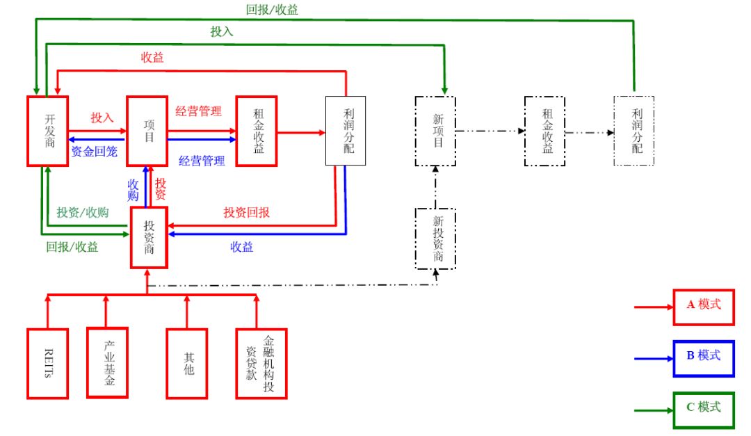 說明:上圖為商業地產資金鏈運作模式凝練。