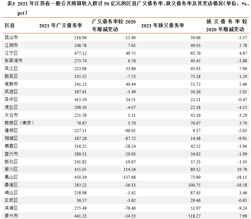 [2] 狹義債務率=地方政府債務余額/綜合財力;廣義債務率=(地方政府債務余額+城投有息債務)/綜合財力;城投有息債務取數規則:以2021年9月末城投有息債務近似替代2021年末數據,若城投公司未披露2021年9月末數據,則以2021年6月末數據替代,城投口徑為WIND口徑。