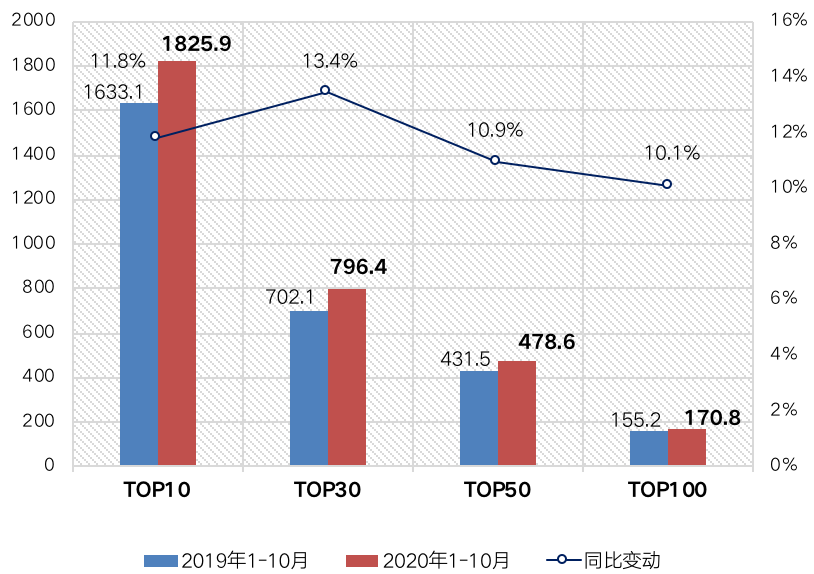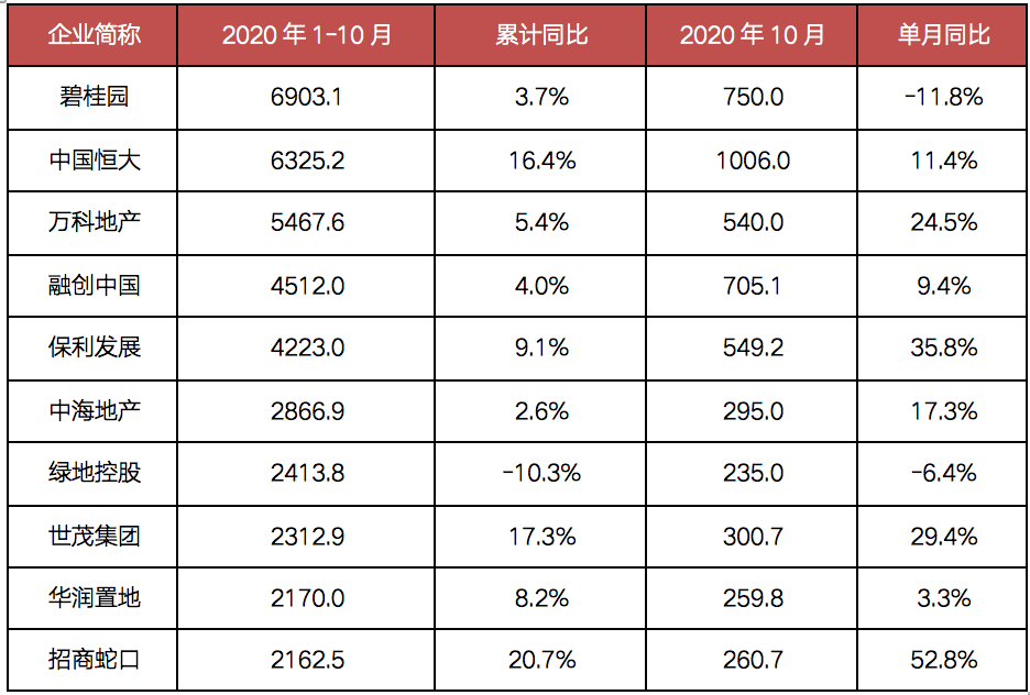 圖:2020年1-10月百強房企銷售操盤金額