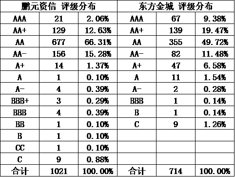 鵬元資信和東方金誠,對同一主體的評級,經常比中誠信等機構的高半檔,所以遇到他們的AAA或者AA+,要謹慎些。