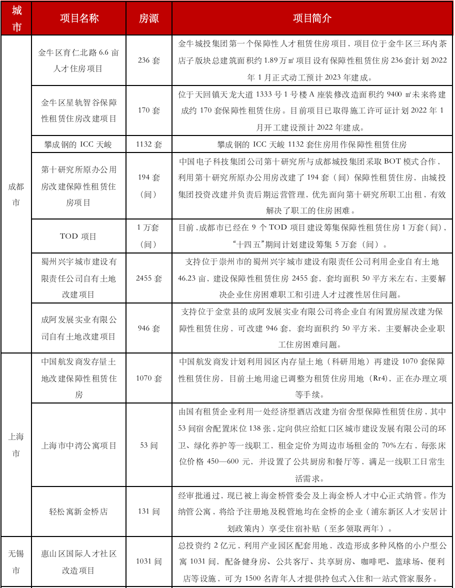 各城市為如期完成十四五保障性租賃住房目標,提出切實可行的多元化籌集路徑,可以利用新供應國有建設用地、集體經營性建設用地、企事業單位自有閑置土地、產業園區配套用地、存量閑置房屋(包含非居住和居住)等,采取新建、非住宅改建、存量盤活等多種方式、多渠道籌集房源,幫助新市民、青年人等群體緩解階段性住房困難。