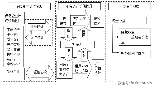 但是不同于其他幾種不良資產(chǎn)經(jīng)營模式,債務(wù)重組需要對企業(yè)未來經(jīng)營進(jìn)行深度介入,通過企業(yè)的起死回生實現(xiàn)價值增值,所以債務(wù)重組是一個價值發(fā)現(xiàn)的過程,并通過價值經(jīng)營的提升,最終實現(xiàn)不良資產(chǎn)經(jīng)營主體與“有救企業(yè)”之間的共贏:
