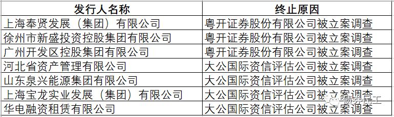 此前的2021年9月30日,中國證監(jiān)會在官網(wǎng)上披露7只小公募公司債券中止。從中止原因來看,其中4家發(fā)行人是因為大公國際資信評估公司被立案調查。目前證監(jiān)會尚未披露最終的調查結果。