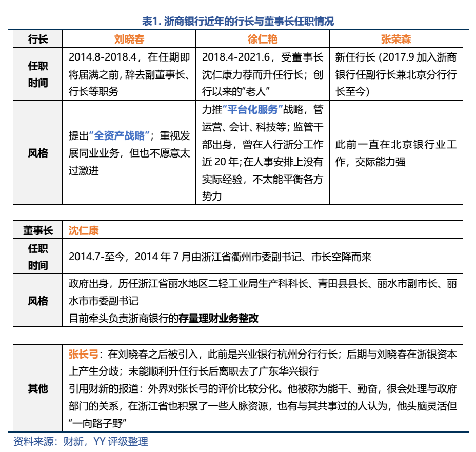 回顧浙商銀行近年的人事變動: