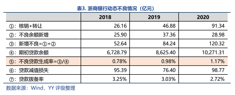 單看公司的話,近三年的不良貸款生成率持續上升,貸款本身的質量可能要比不良率指標所反映的有所高估。貸款撥備率比年初減少了0.31%,加速出清消耗了一些壞賬安全墊;且2019年、2020年計提的貸款減值損失均不能覆蓋新生成的不良。