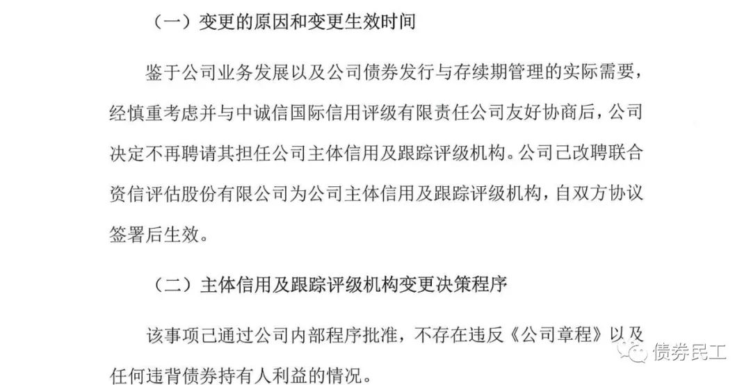 在梳理了發(fā)行人對(duì)評(píng)級(jí)結(jié)果提出異議那些事兒之后,債券民工發(fā)現(xiàn)兩家發(fā)行人在2021年7月8日披露了兩個(gè)很特別的公告信息,公告內(nèi)容是在債券存續(xù)期內(nèi)更換跟蹤評(píng)級(jí)機(jī)構(gòu)的案例。首先需要說(shuō)明的是,并沒有明確的監(jiān)管要求規(guī)定不能在債券存續(xù)期變更評(píng)級(jí)機(jī)構(gòu),但是這種情況的確是不常見。讓我們一起來(lái)看一下: