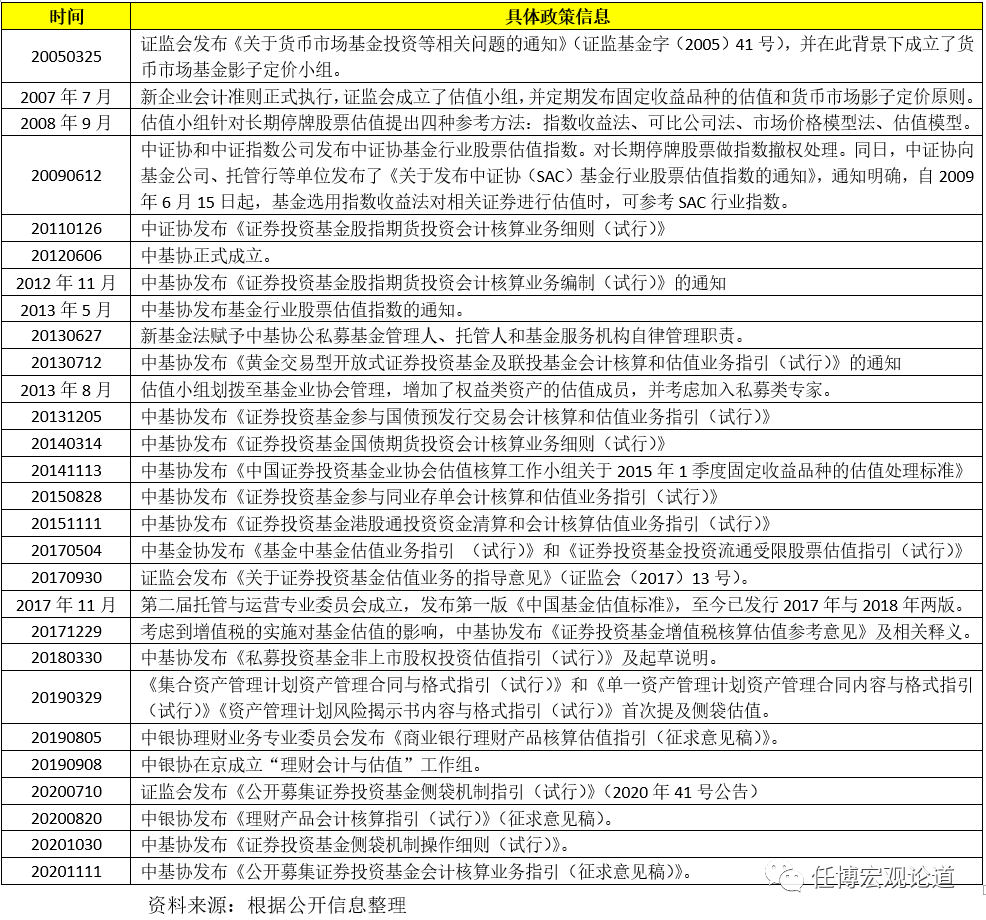 2、2012年中基協成立后,其嘗試解決了多種投資品種的估值方法,在基金估值的問題上可以說動作頻繁。同時中基協還自2017年開始每年發布《中國基金估值標準》,以期作為行業統一標準指引。